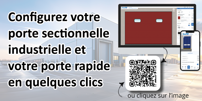 Chez SAFIR Industrie, notre mission a toujours été de vous offrir des solutions de fermeture alliant haute technicité et simplicité d’utilisation. Aujourd’hui, nous franchissons une nouvelle étape dans notre transformation digitale avec le lancement de nos deux nouveaux configurateurs de portes industrielles développés en partenariat avec Allotools : portes sectionnelles et portes souples rapides